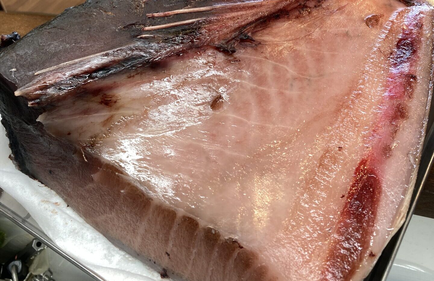 当店の熟成マグロとは、マグロの中でも黒いダイアと称される本マグロ(クロマグロ)の旨みを最大級に引き出す乾燥熟成をしております。 At our restaurant, “aged tuna” means premium bluefin tuna (hon-maguro), known as the “black diamond” of tuna, that we dry-age to draw out its umami to the fullest.